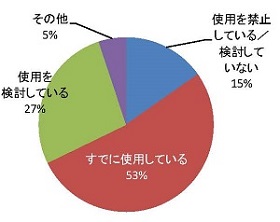 反面、「使用を禁止している / 検討していない」は15%と少なかった。